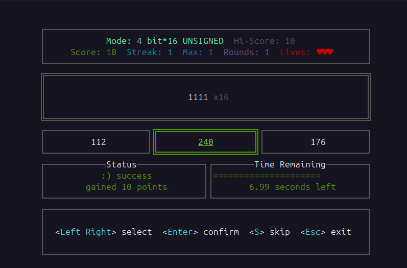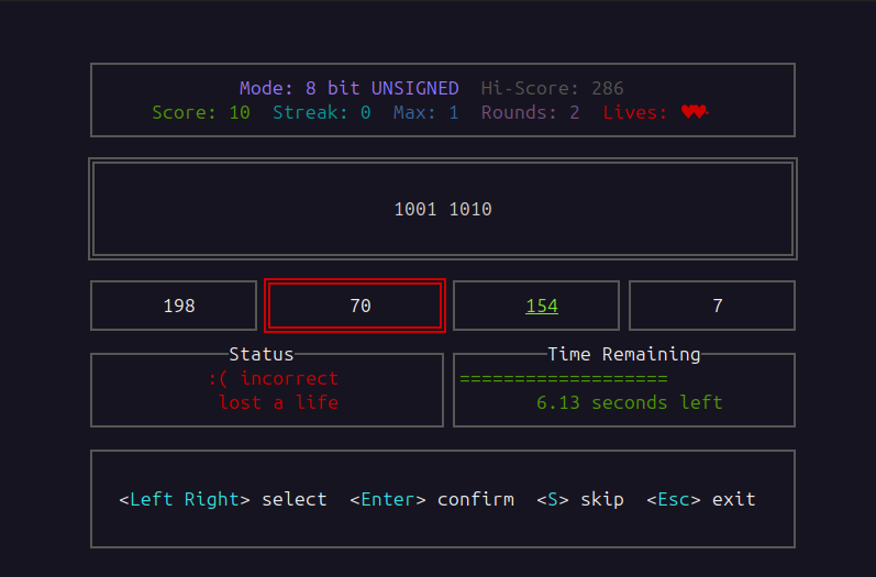 Guess the correct number (from binary to decimal) before time runs out!