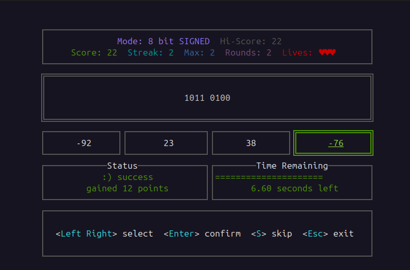 - use left/right to toggle signed/unsigned mode