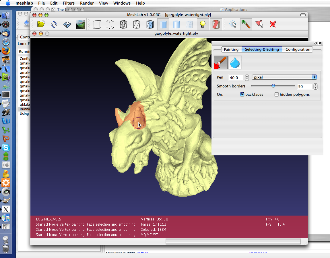 An example of the new interactive editing features. You can directly paint, with customizable brushes, over the mesh. You can interactively change color (left), define selection (center) and even smooth out noise and small features (right). Thanks to Andreas Gfrei for the development of this plugin. |